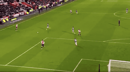 第33分钟,德布劳内操刀,骗过索默,一蹴而就,但这一次的射门造成了德布劳内大腿后侧肌肉严重拉伤,被换下场。